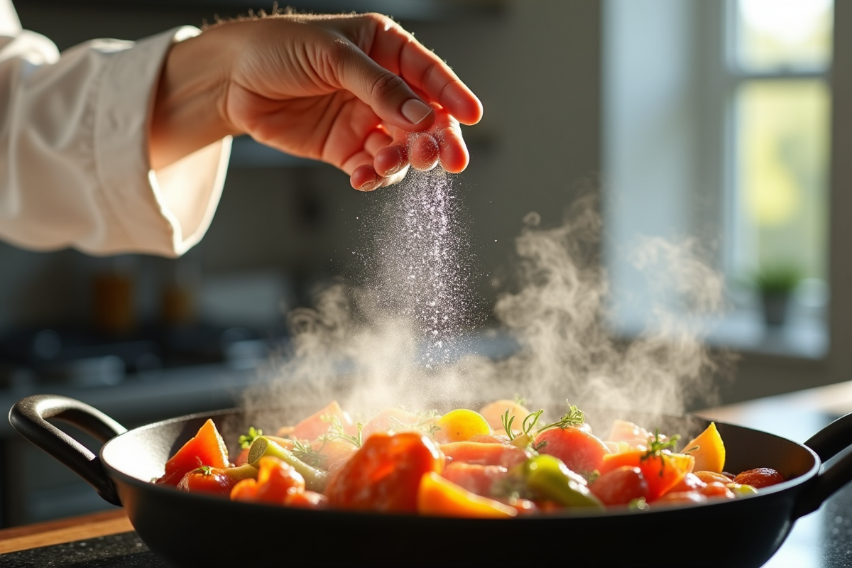 Pour les plats mijotés, le salage se fait en plusieurs temps. Une pincée en début de cuisson, une vérification en fin de parcours : l’évaporation concentre les goûts, donc inutile d’être trop généreux au départ.